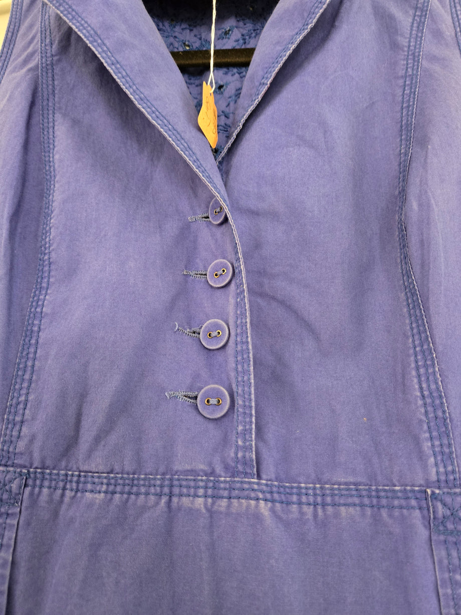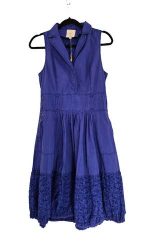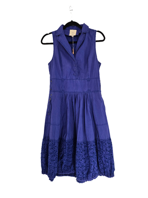 Sleeveless Dress With Shirt Collar and Eyelet Cotton Paneling. Size M.